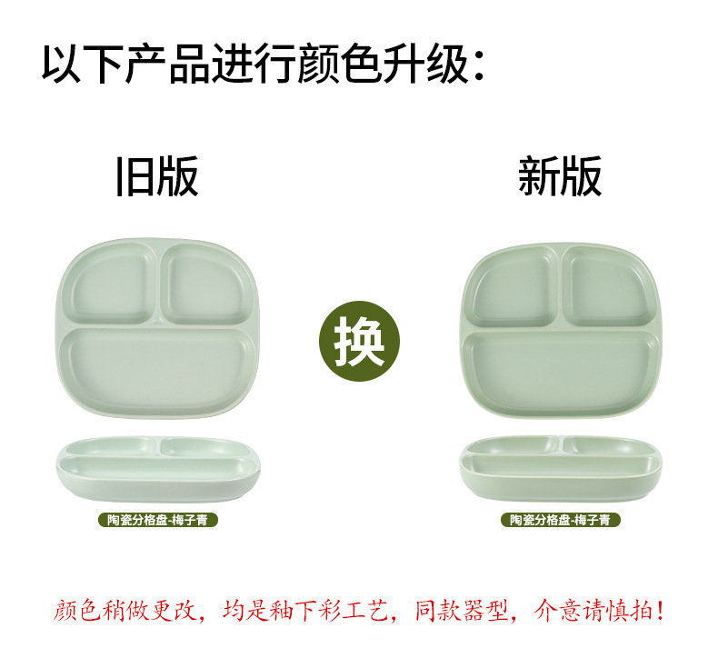 8.5-inch three-grid square plate-matcha green