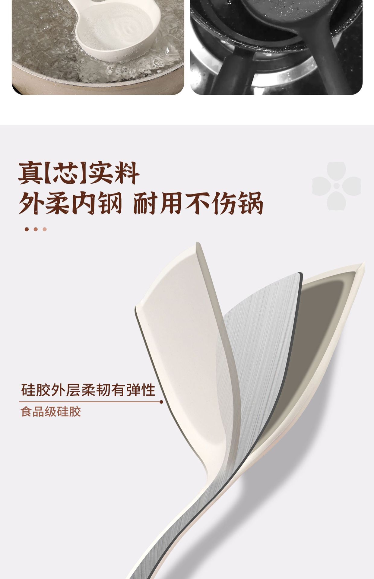 blue gray * steel core silicone [spatula + soup spoon] guard health