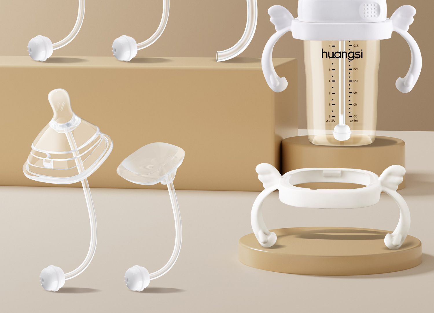 suit [pp head feeding bottle straw + duckbill + anti-spray straw mouth] free: box + brush