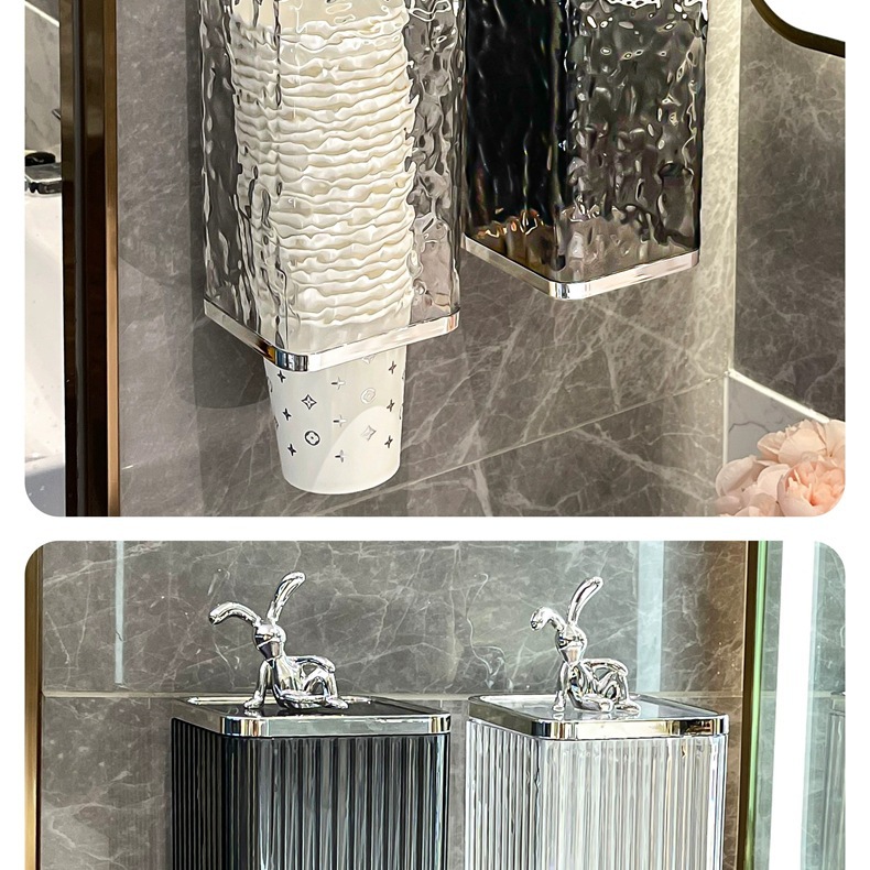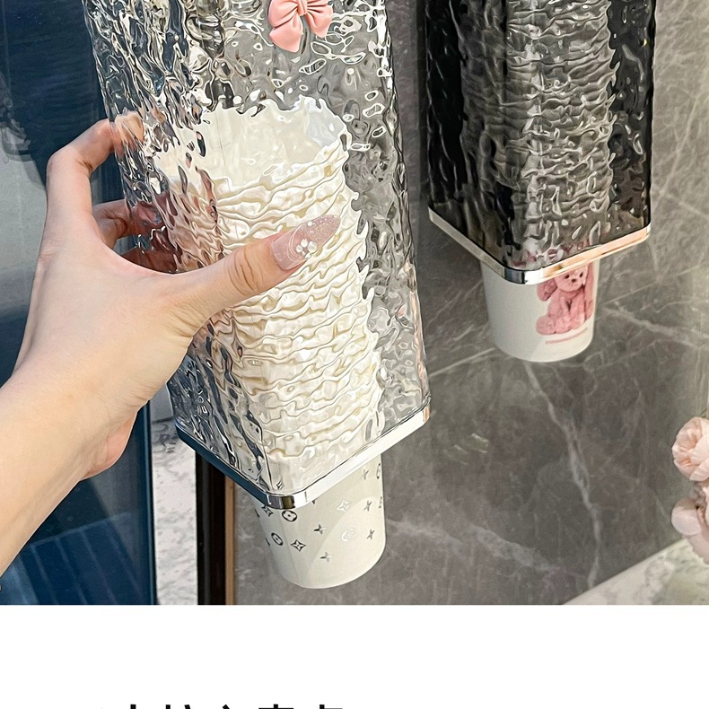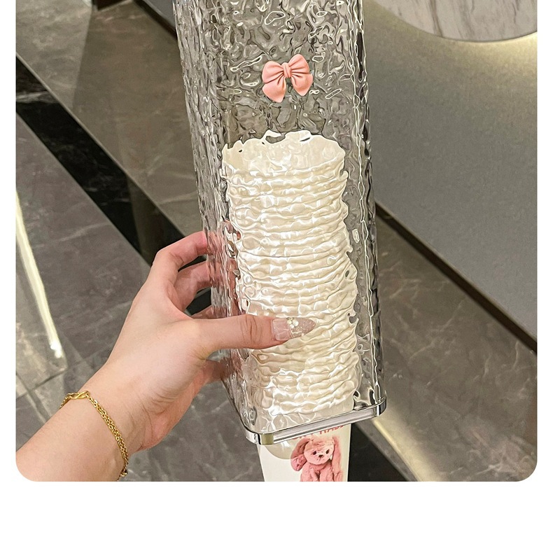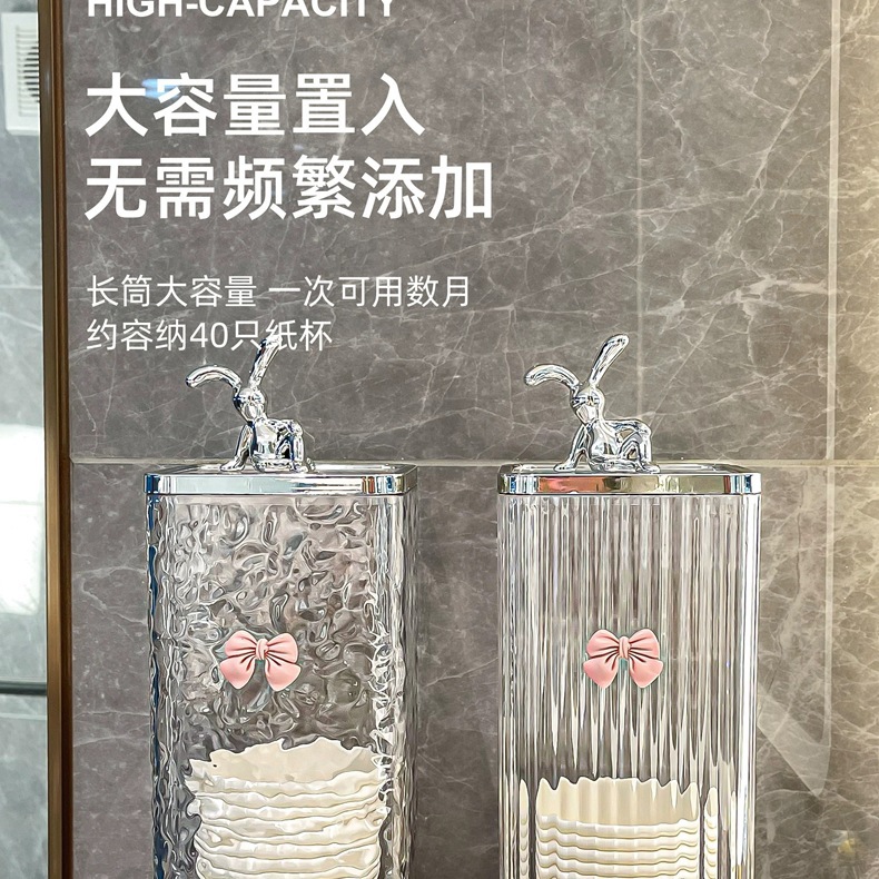 [vertical stripes] transparent gray silver + rabbit + pink bow