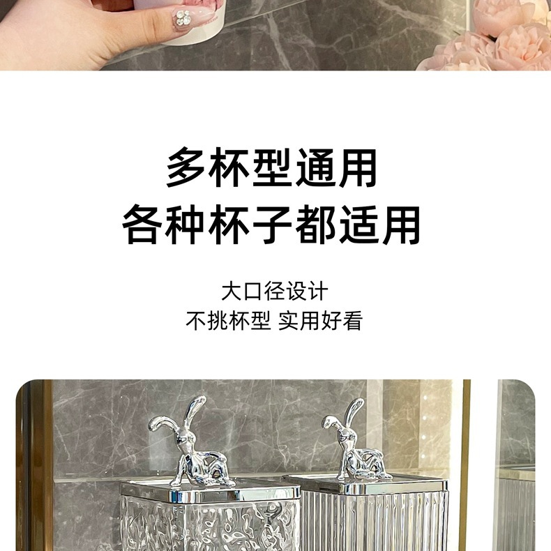 [vertical stripes] transparent silver + rabbit + pink bow