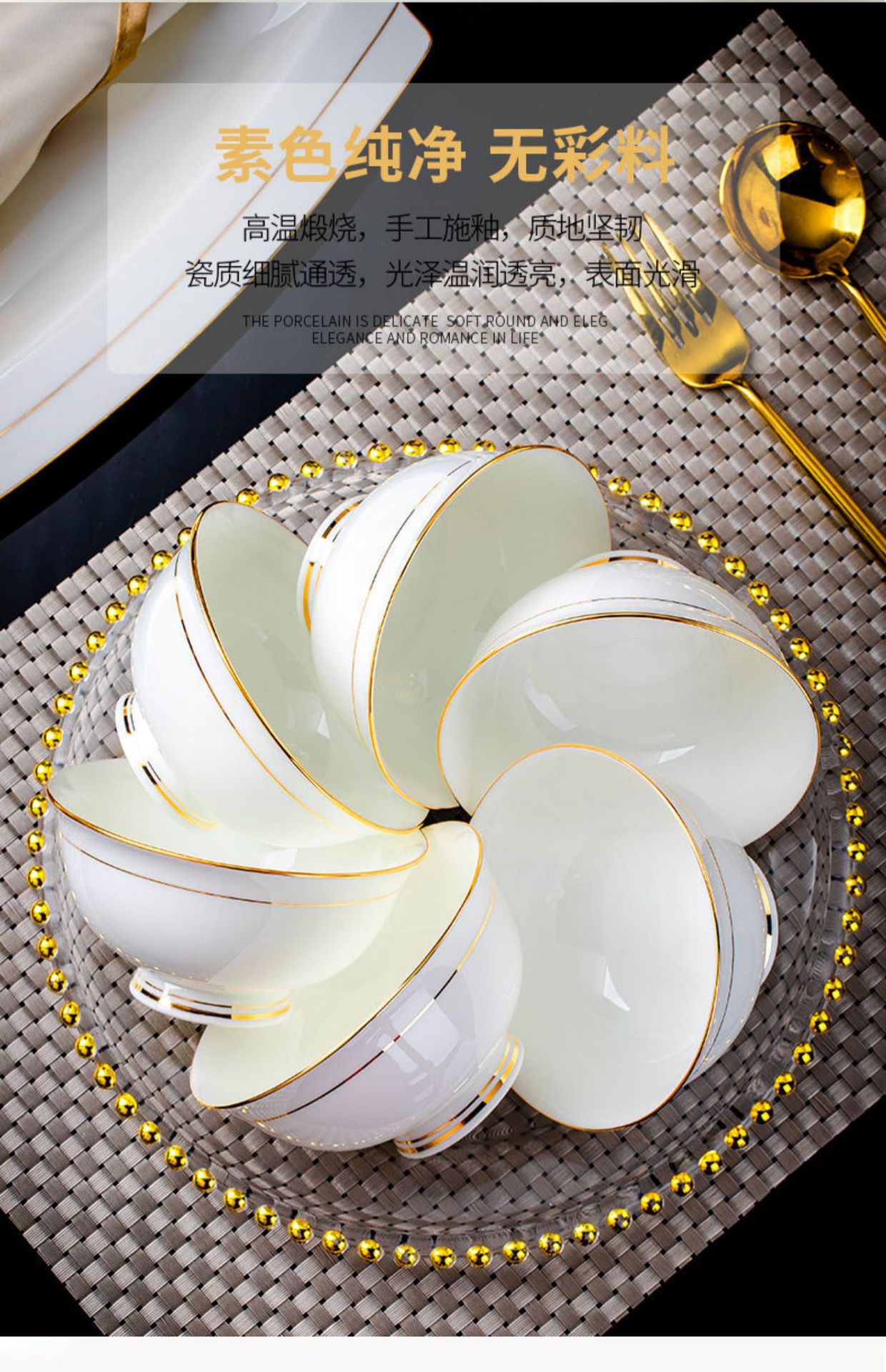 gold inlaid with jade [manual painting golden] 6-inch bone dish 2