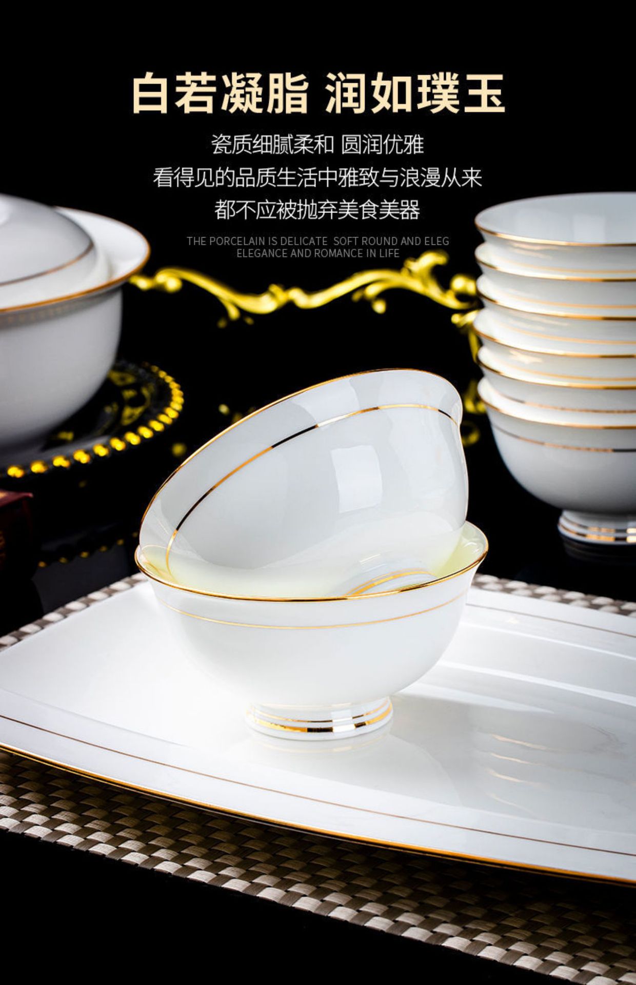 gold inlaid with jade [manual painting golden] 7 inch soup bowl 1
