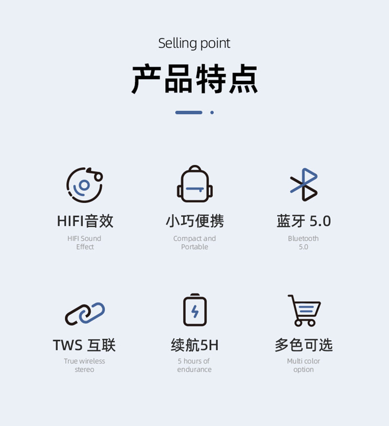 5、Long-lasting battery life, enjoy uninterrupted music for up to 5 hours