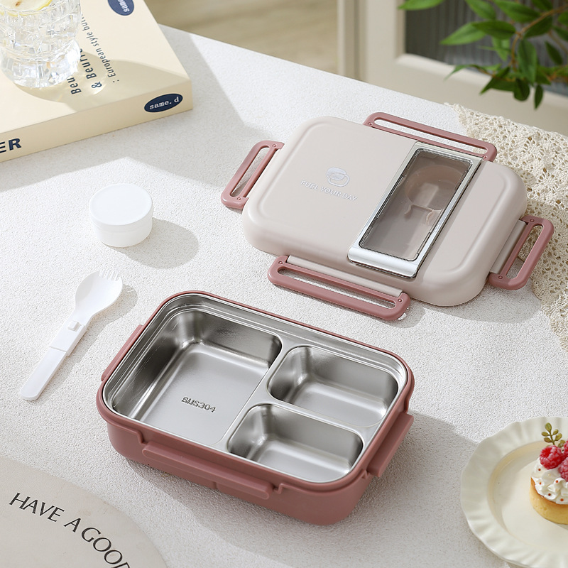 cross-border 304 stainless steel divided lunch box student office worker portable lunch box adult bento box bentobox
