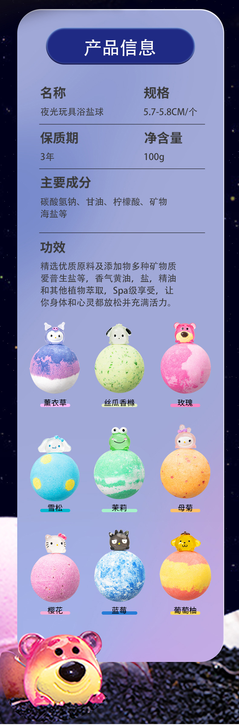 100g bear lemon flavor bath salt
