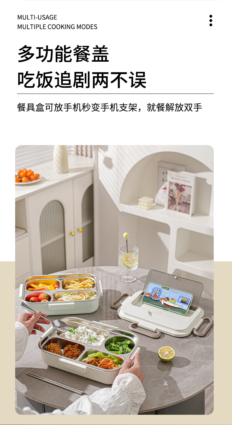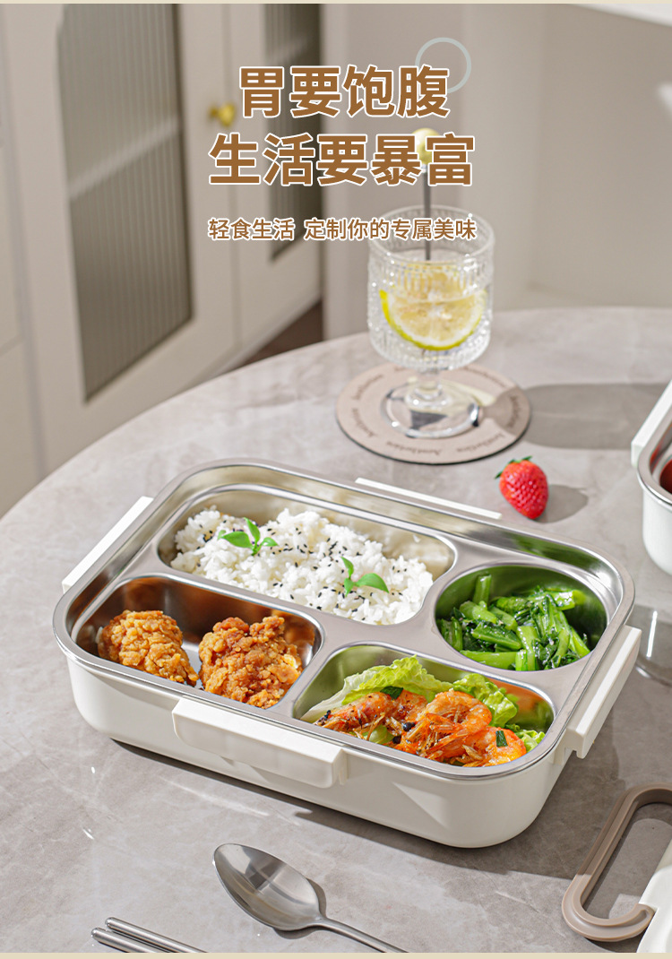 milky white single plate with tableware + stainless steel soup bowl + thermal bag
