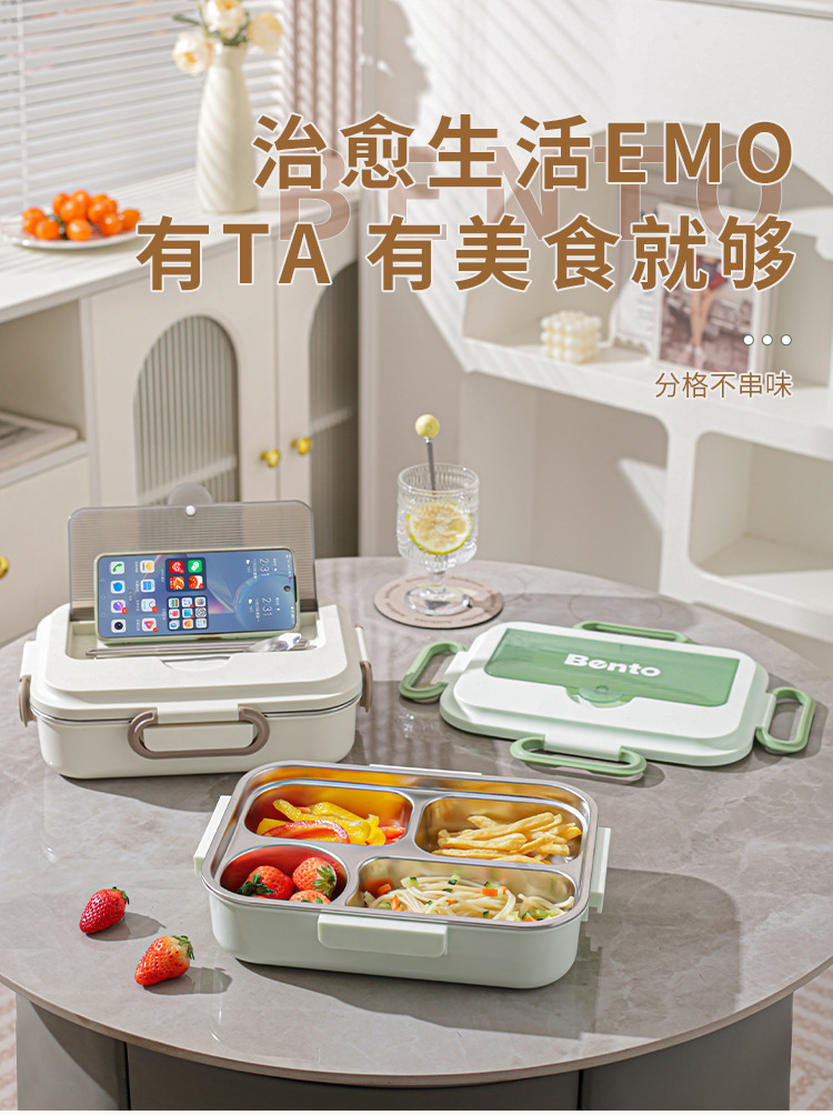 mint green single plate with tableware + stainless steel soup bowl + thermal bag