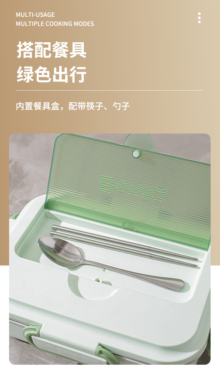 avocado green single plate with tableware + stainless steel soup bowl + thermal bag