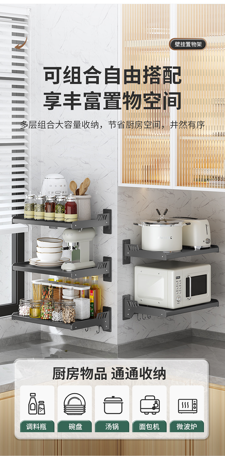 [microwave oven shelf] x60cm (gray with hook)