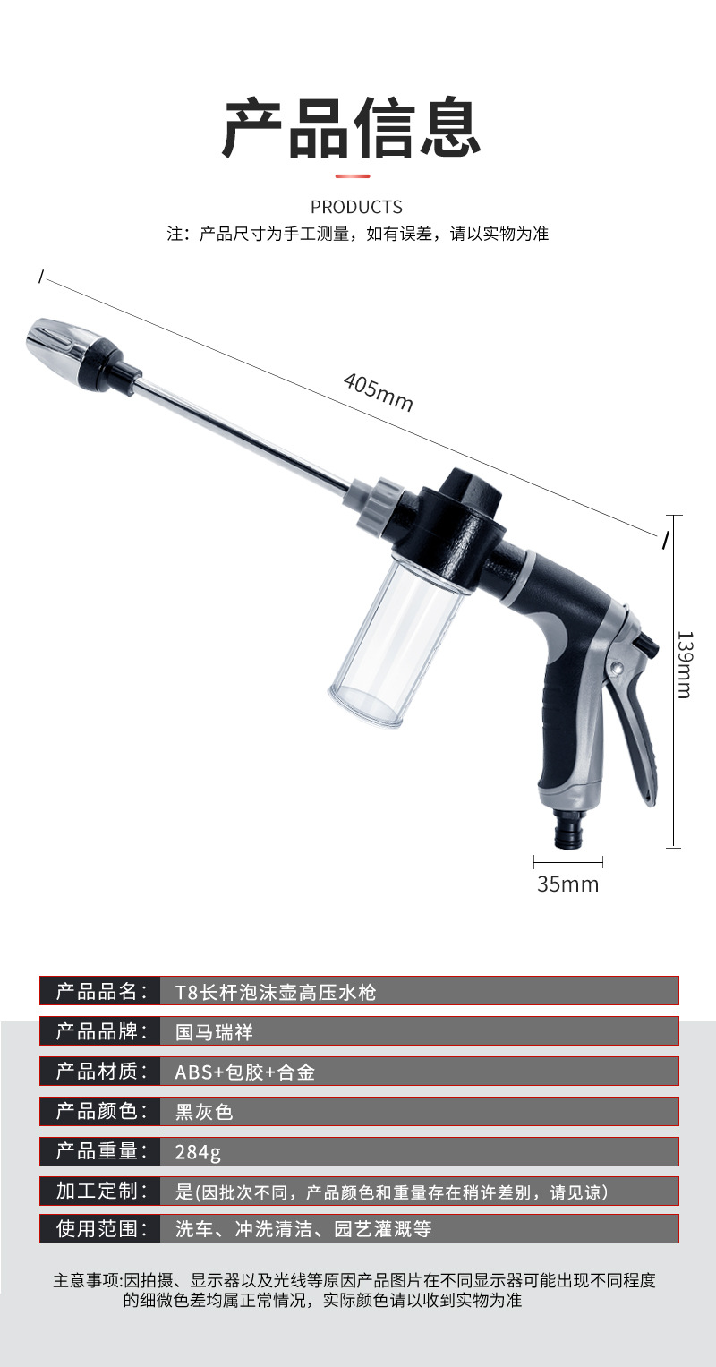 t8 long brush holder foam lance water gun