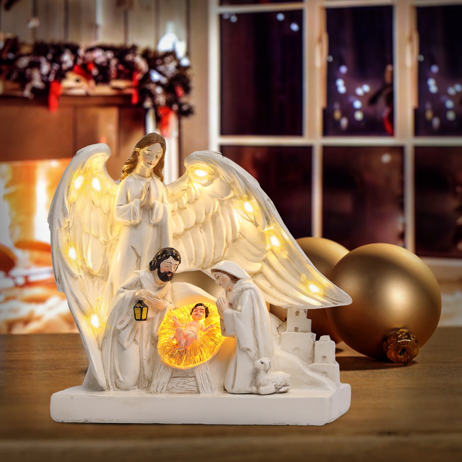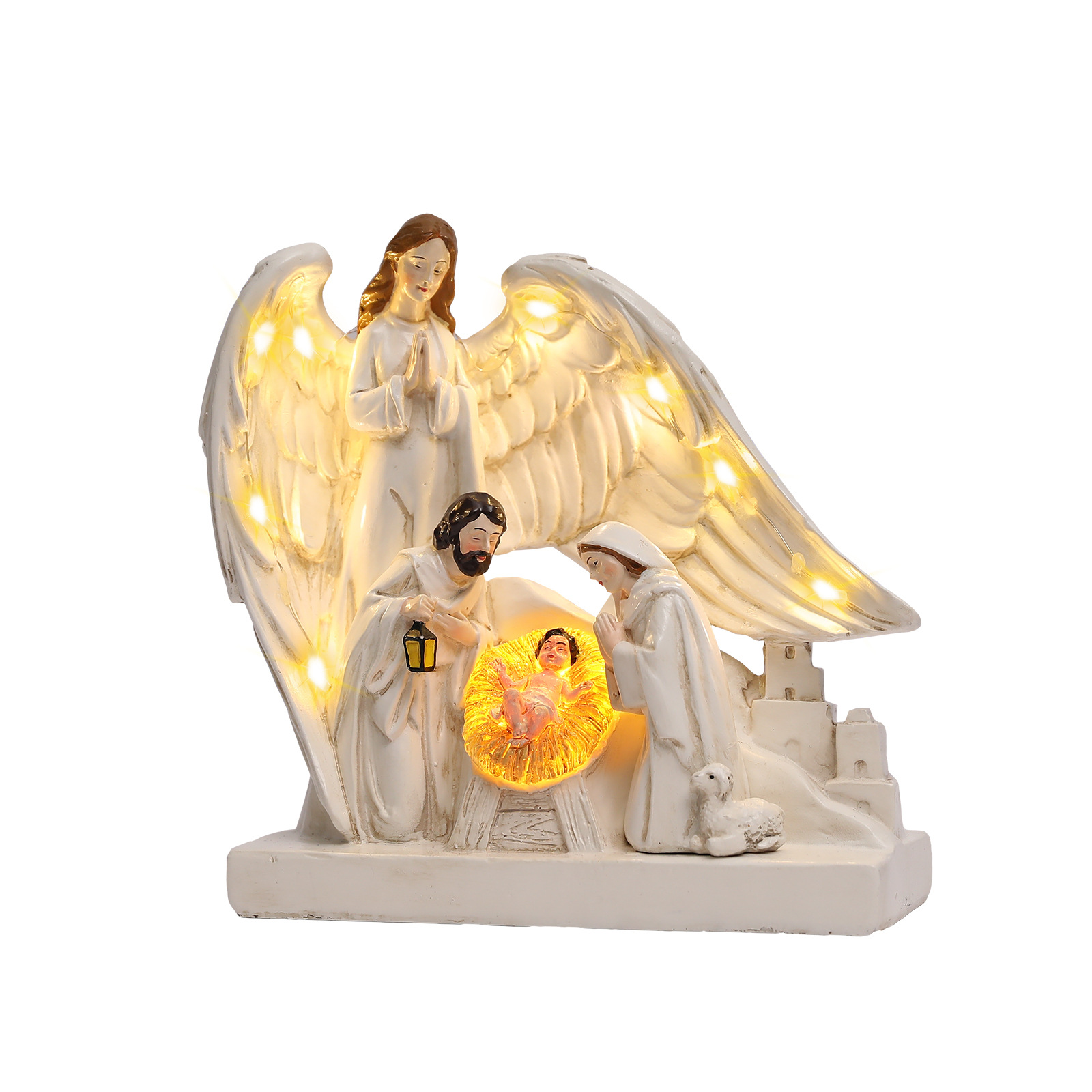 cross-border resin crafts maria christmas manger lighting group decoration horse trough group birth decorations
