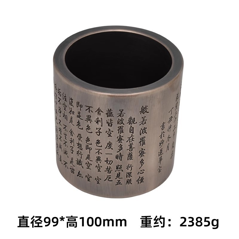 white copper heart sutra pen holder