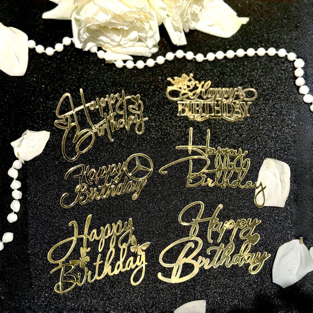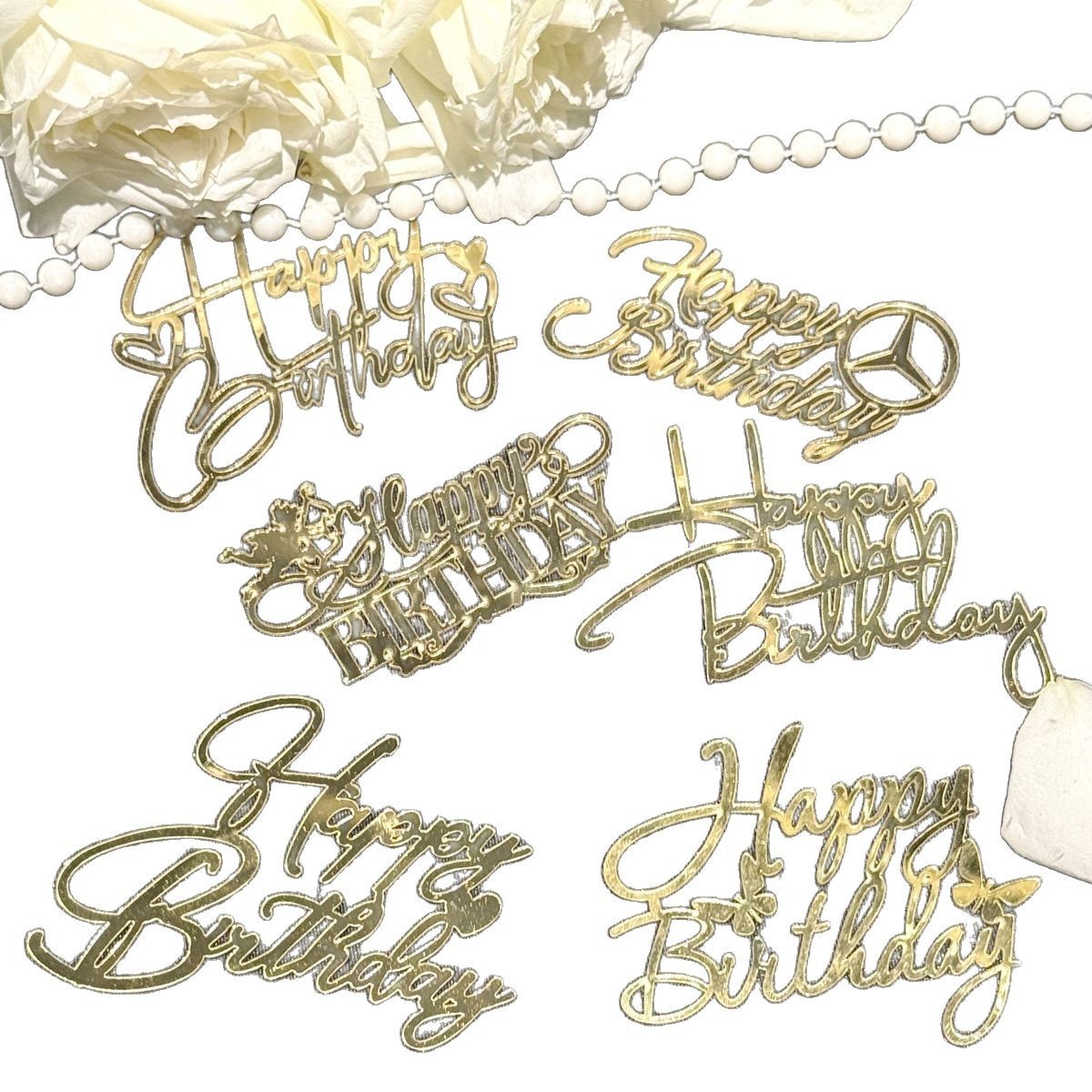 1. 3mm thickness acrylic mercedes-benz style happy birthday cake decoration golden