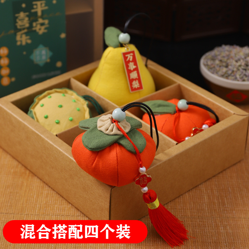 apple + pear + persimmon + lotus seedpod mixed with four gift boxes