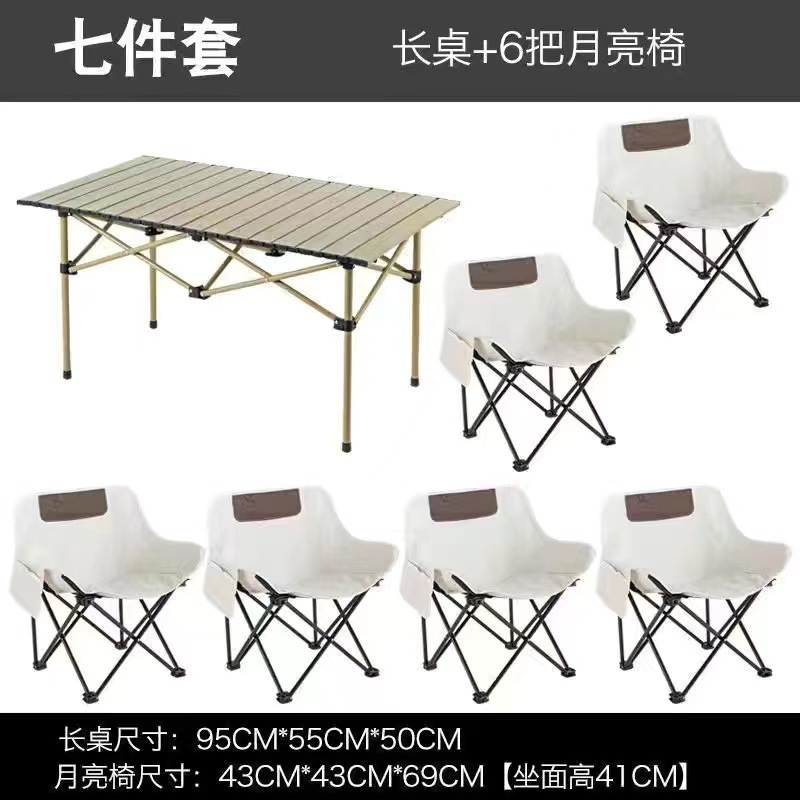 wood grain eight-immortal table +4 khaki moon chair + big bag