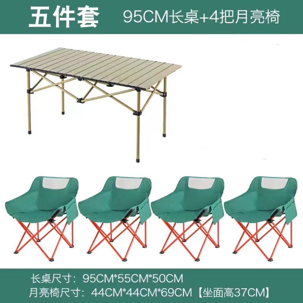 1.2 m wood grain long table +4 khaki moon chair + big bag