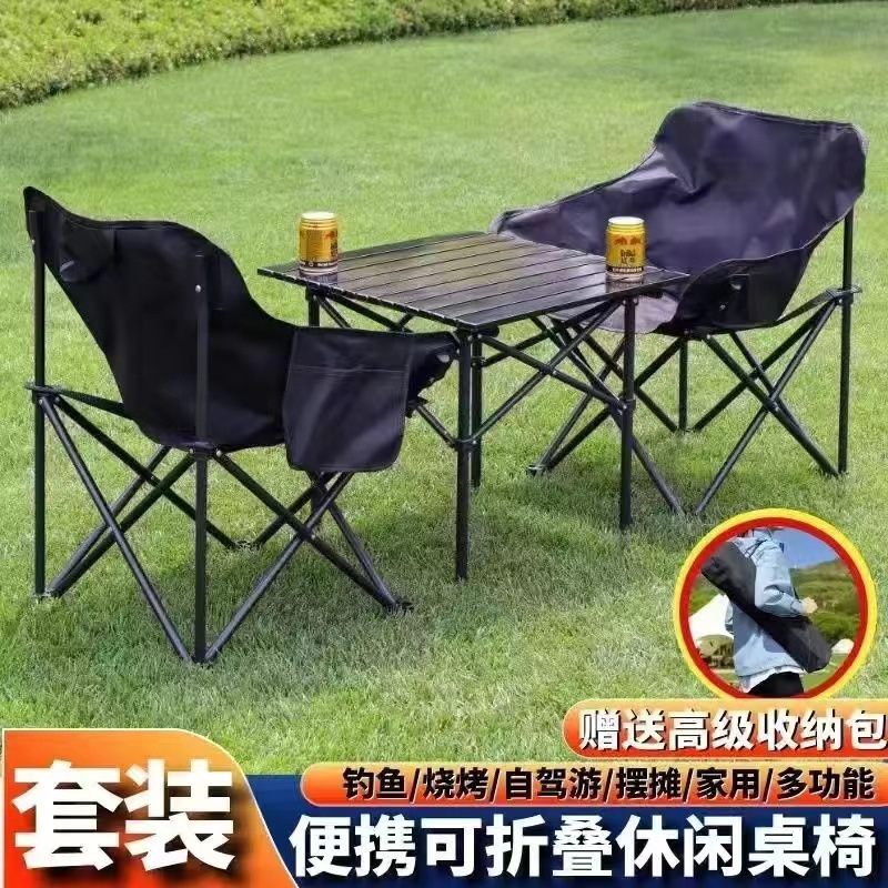 wood grain eight-immortal table +2 khaki moon chair + big bag