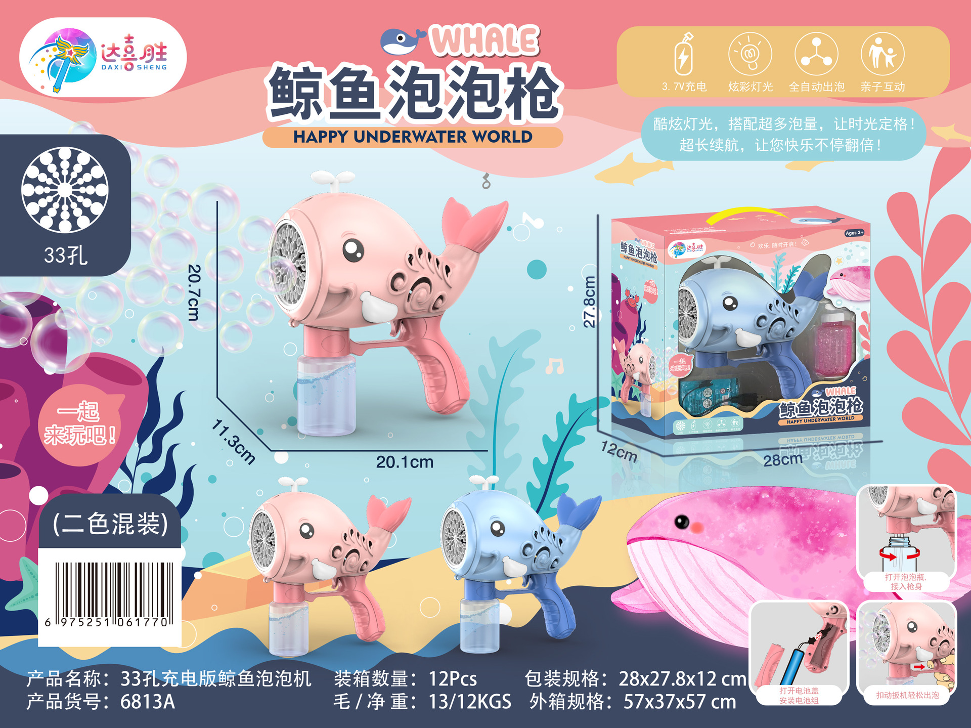 6813a automatic rechargeable version whale bubble machine [2 colors random]]