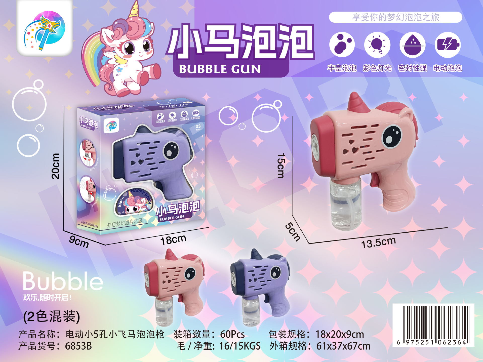 6858-2 cartoon pony bubble gun [blue pink random]]