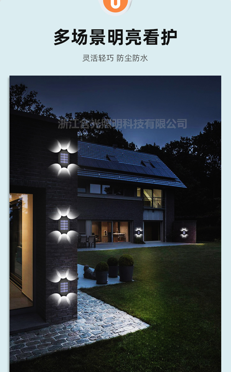 solar wall lamp 6led convex mirror [warm light 4 pack]]
