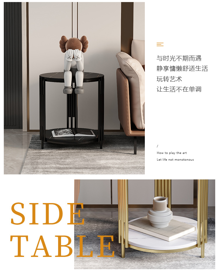 italian sofa side table light luxury living room stone plate round corner table nordic modern balcony small round table small coffee table side table