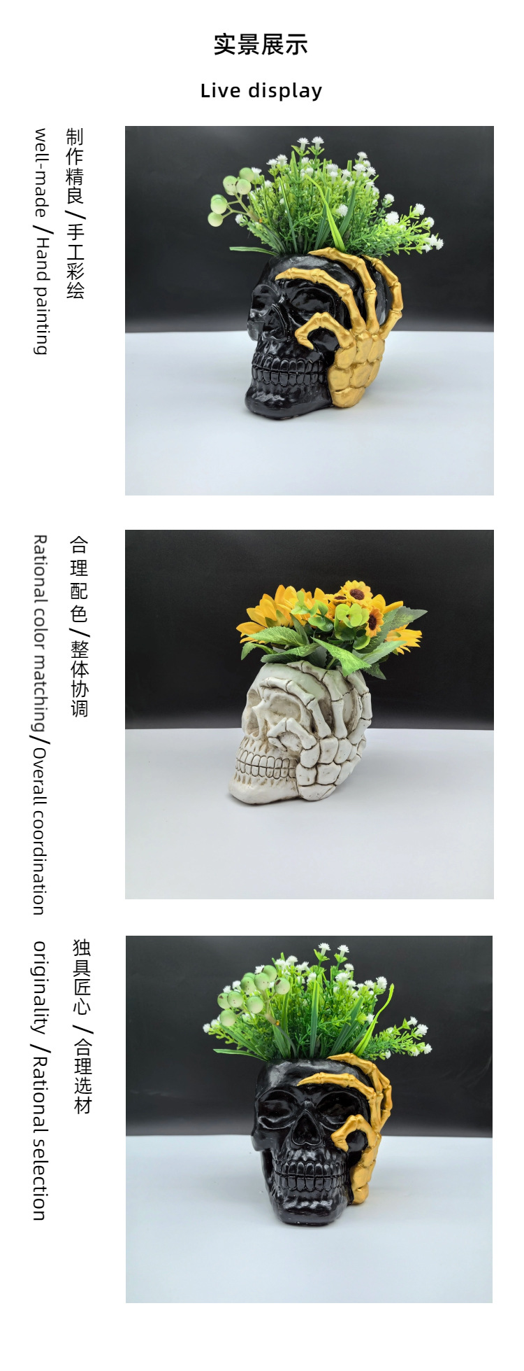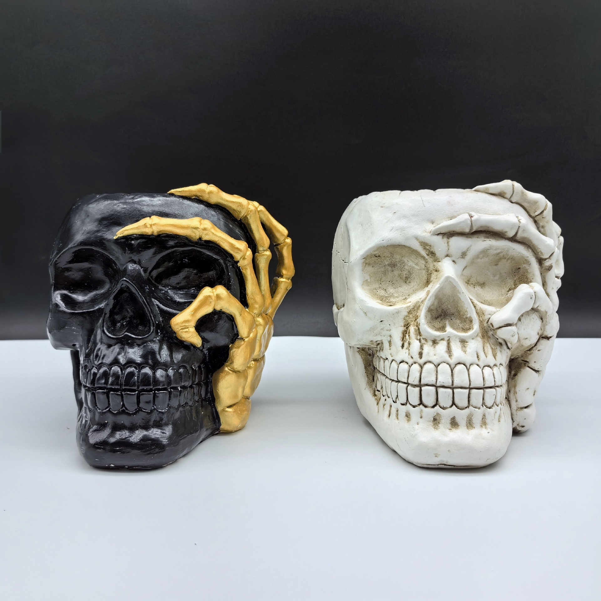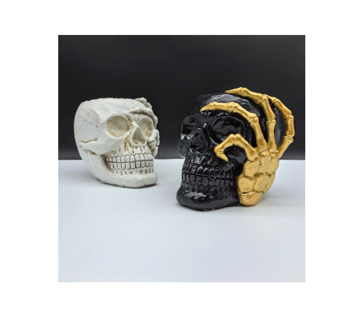 golden hand touch face skull