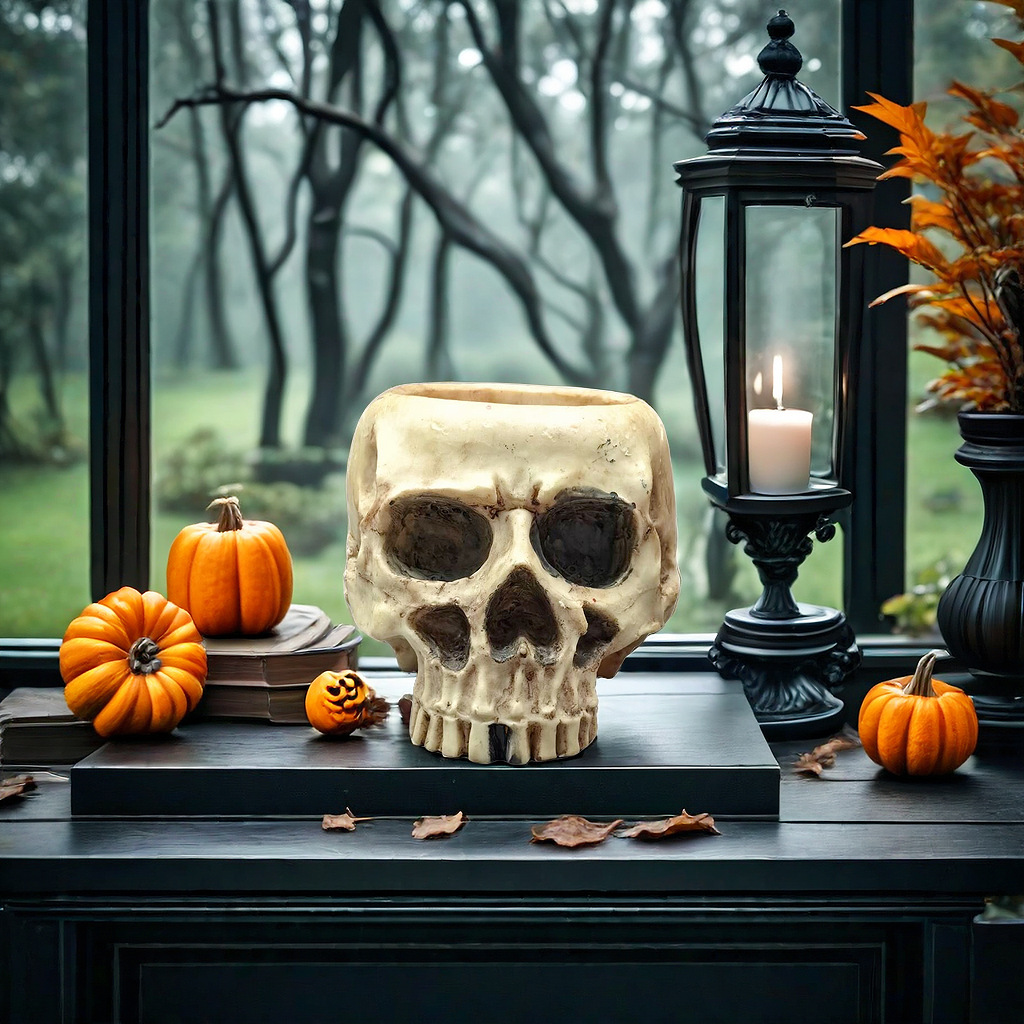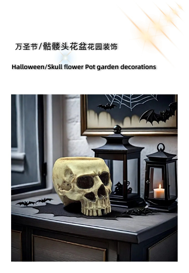 cross-border new arrival halloween skull flowerpot decoration creative garden skull resin crafts decorations wholesale