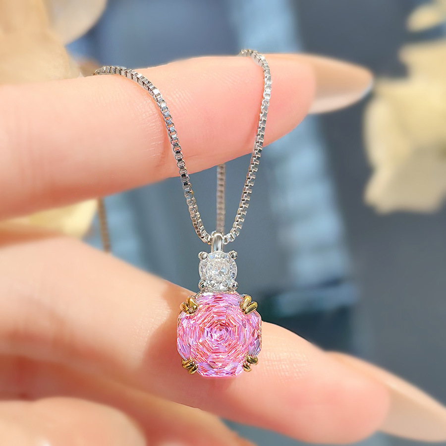 deep pink diamond pendant [with box chain]]