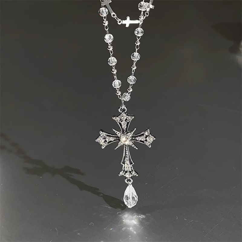 double-layer beaded cross necklace