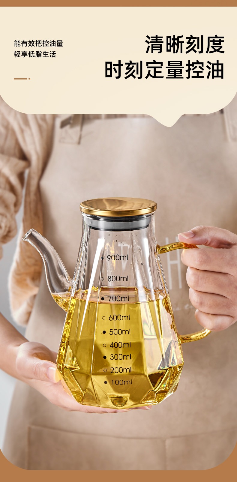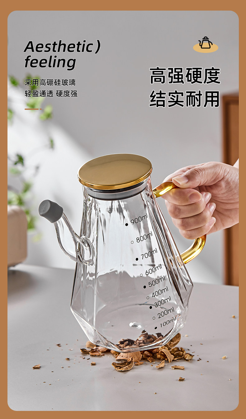 rhombic oiler-transparent 900ml with mouth cover