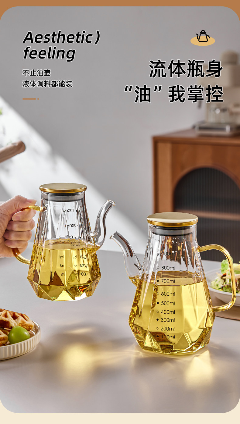 rhombic oiler-transparent 700ml with mouth cover