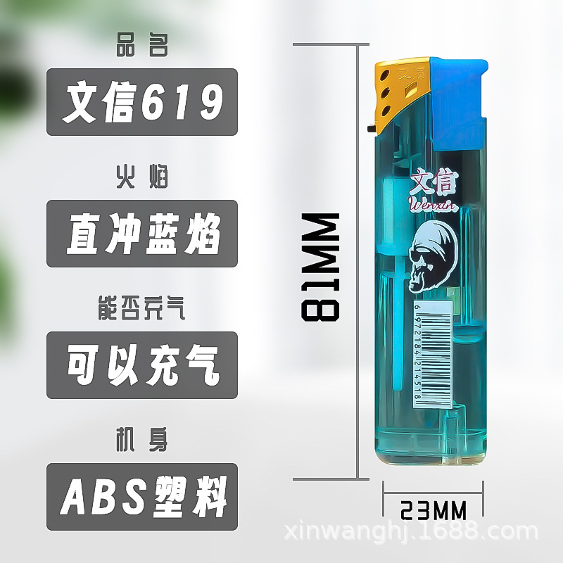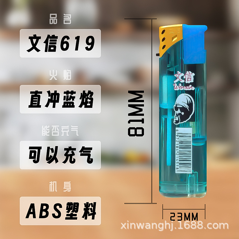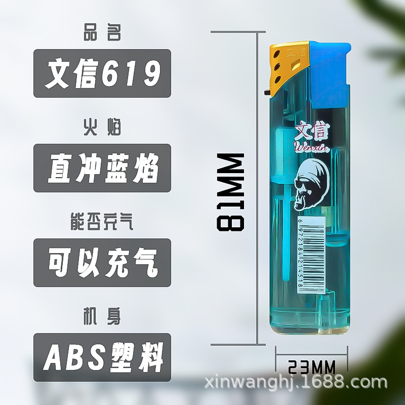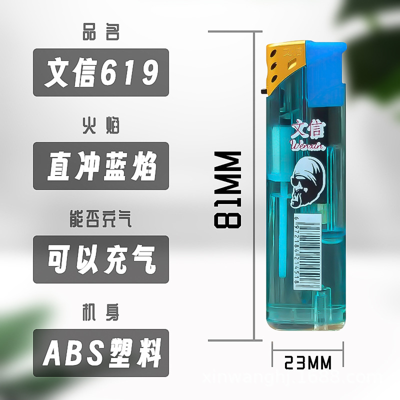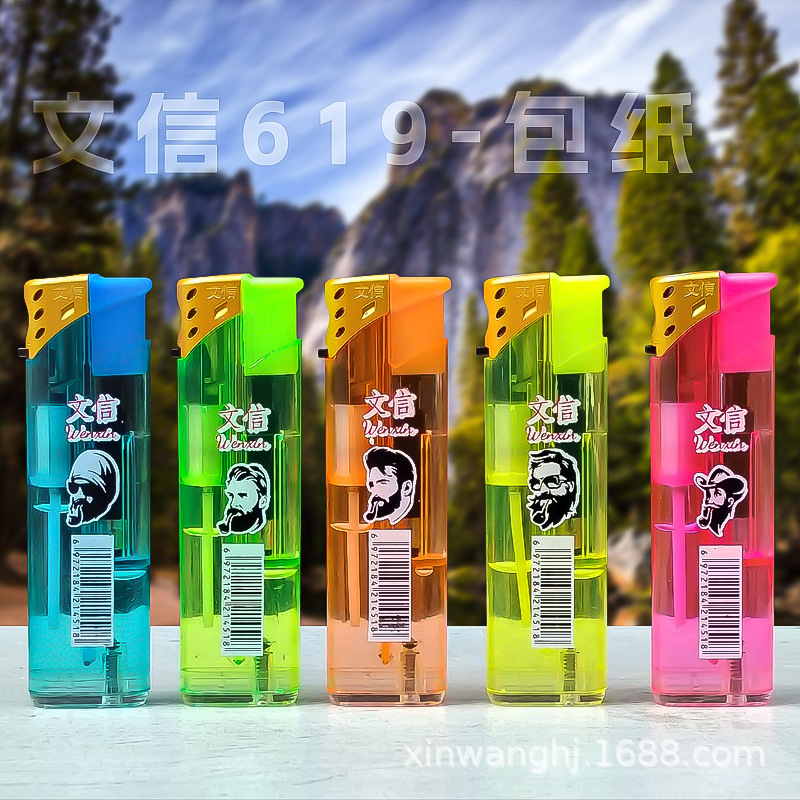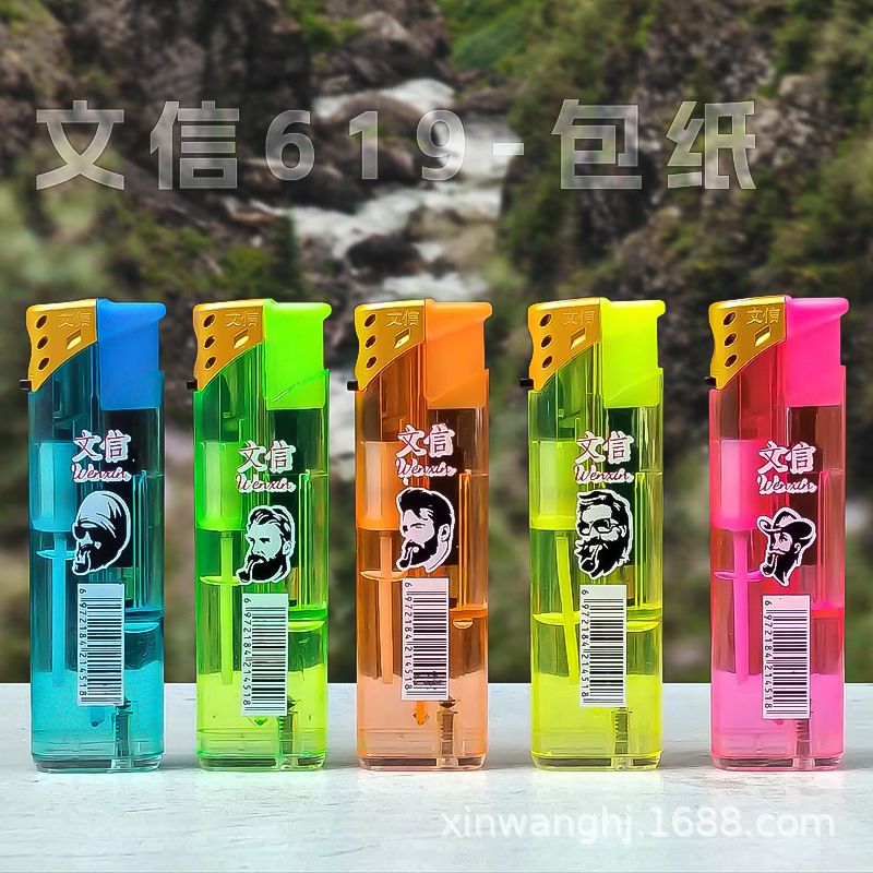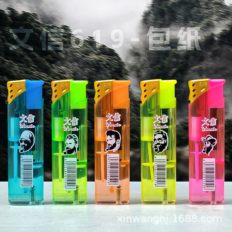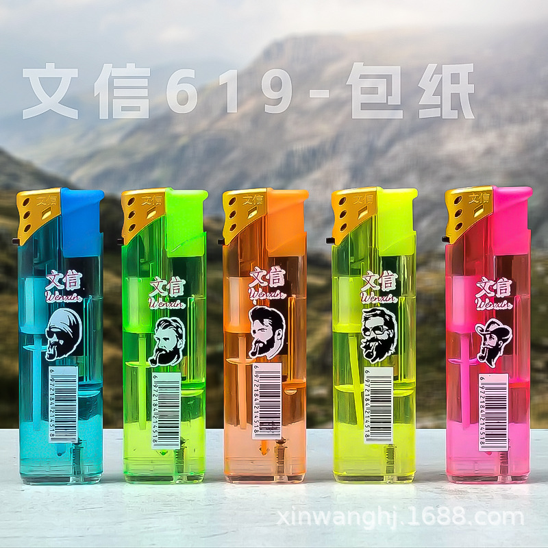 letter 619 wholesale transparent torch lighter plastic wind-resist tool rechargeable gas visual extra thick and durable