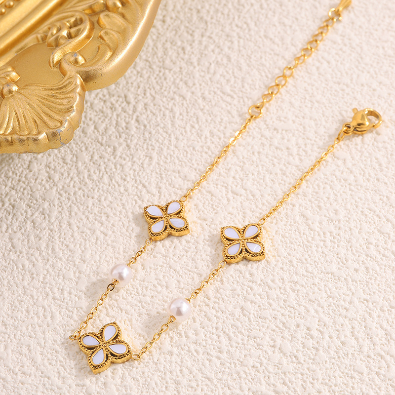 white pearl diamond clover bracelet