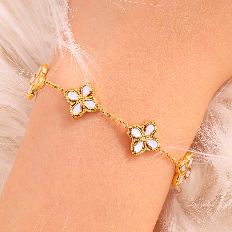 white shell full diamond clover bracelet