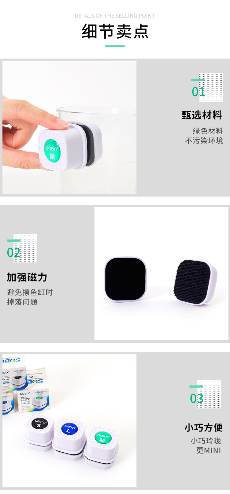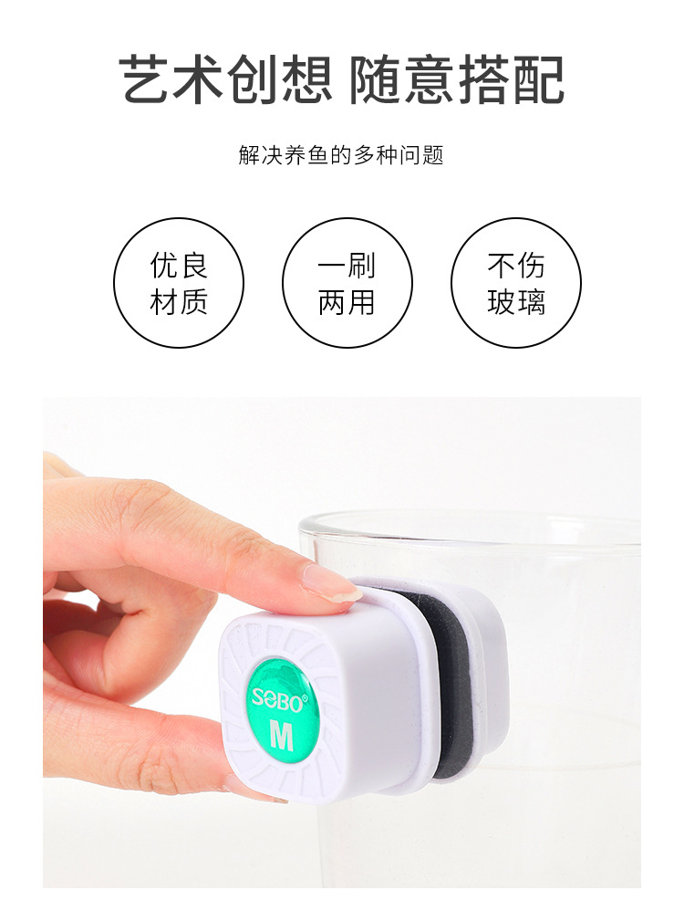 fish tank mini magnetic brush glass fish tank inner and outer wall convenient cleaning brush simple and compact square glass brush wholesale