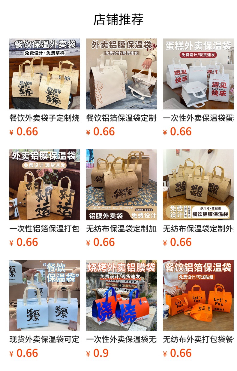 food thermal bag; large size length 26 height 26 width 17cm; film non-woven fabric