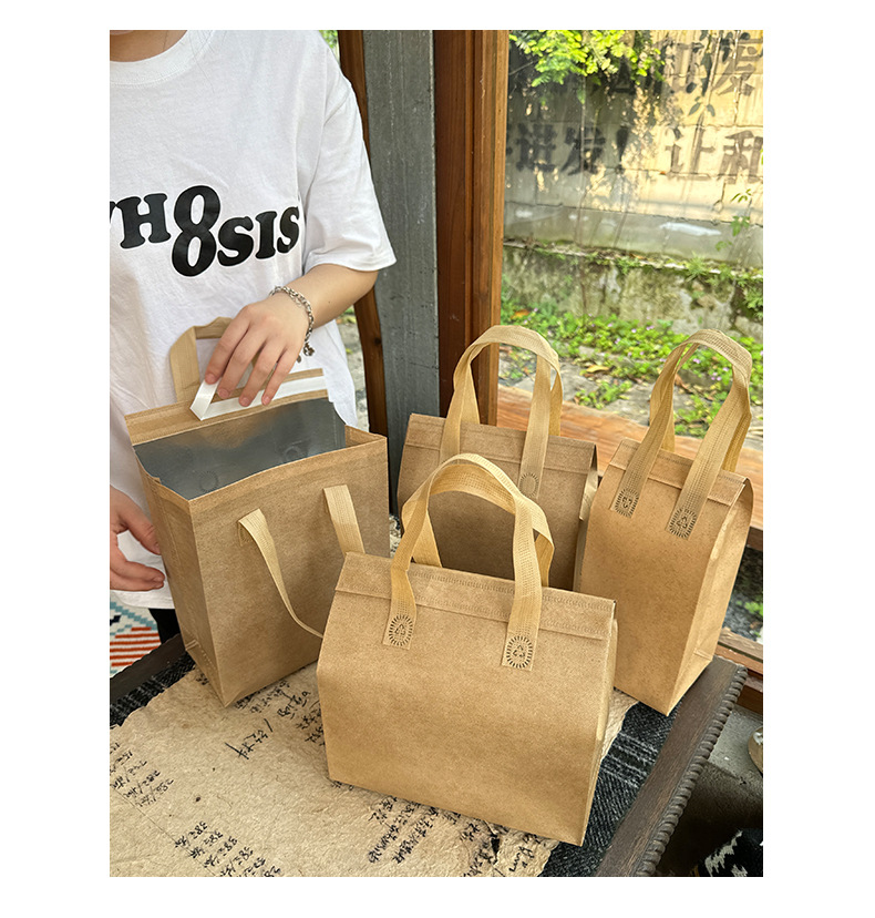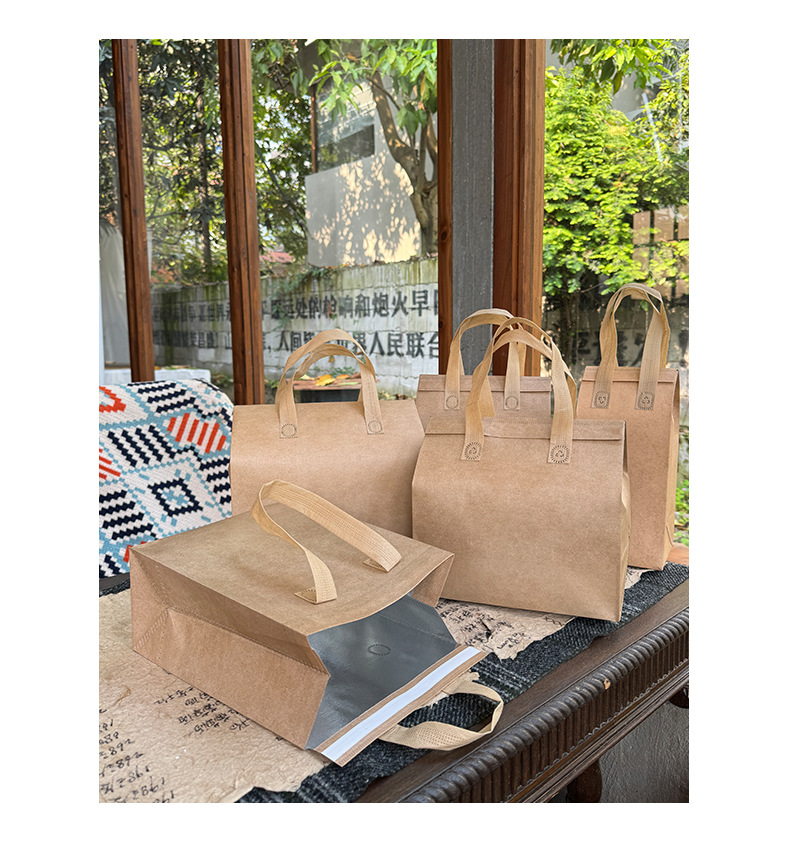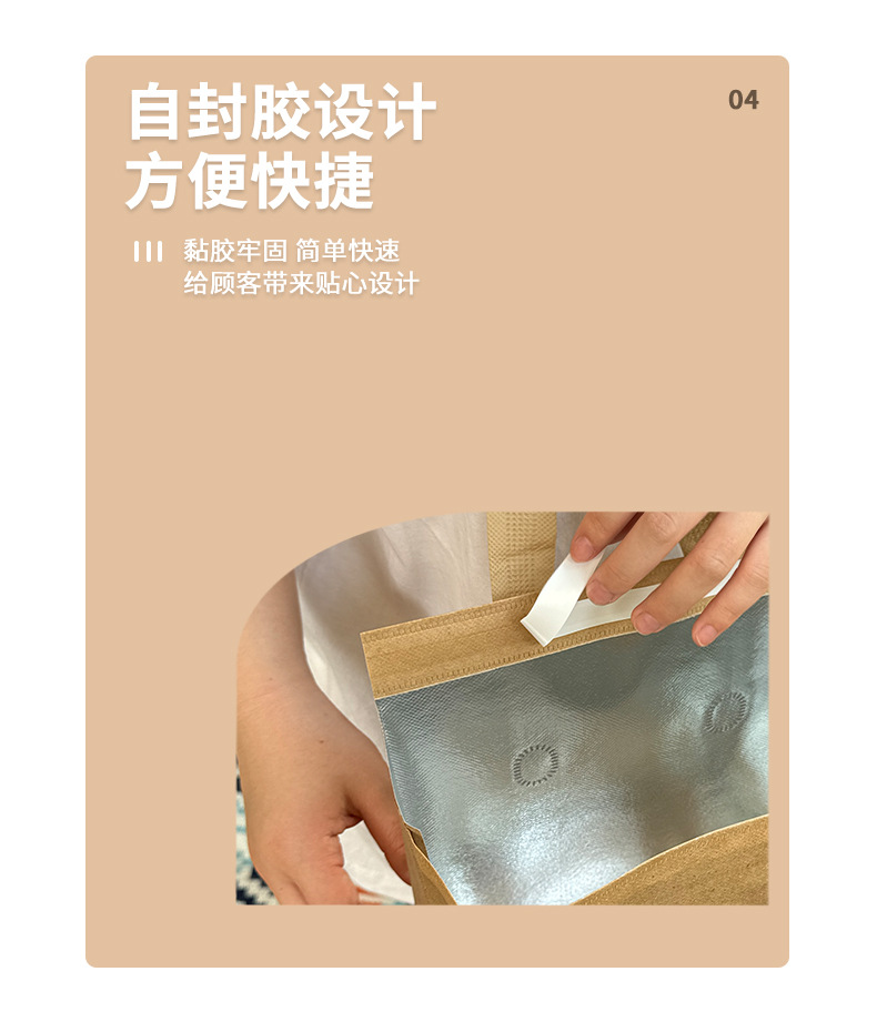 light brown thermal bag; large size length 26 height 26 width 17cm; film non-woven fabric