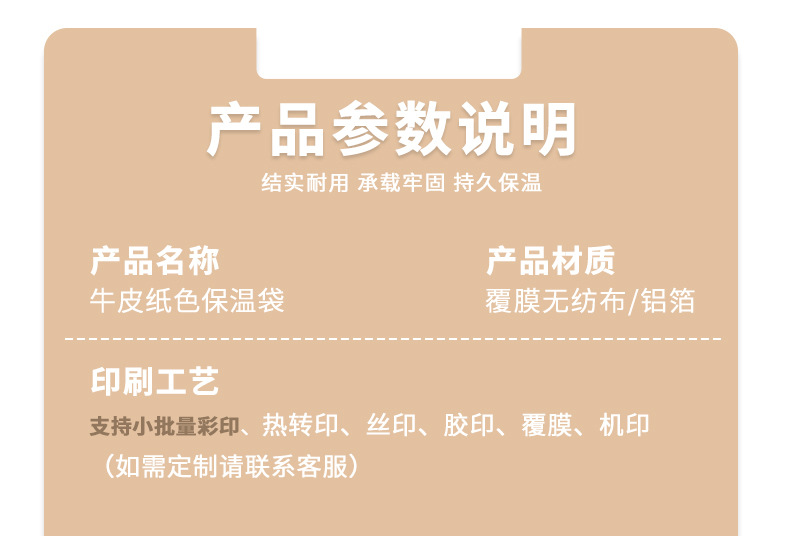 beige tasty thermal bag; single cup length 12 height 28 width 11cm; film non-woven fabric