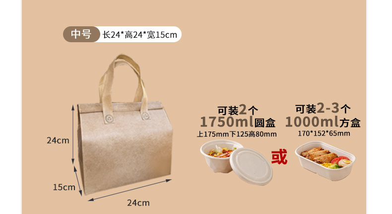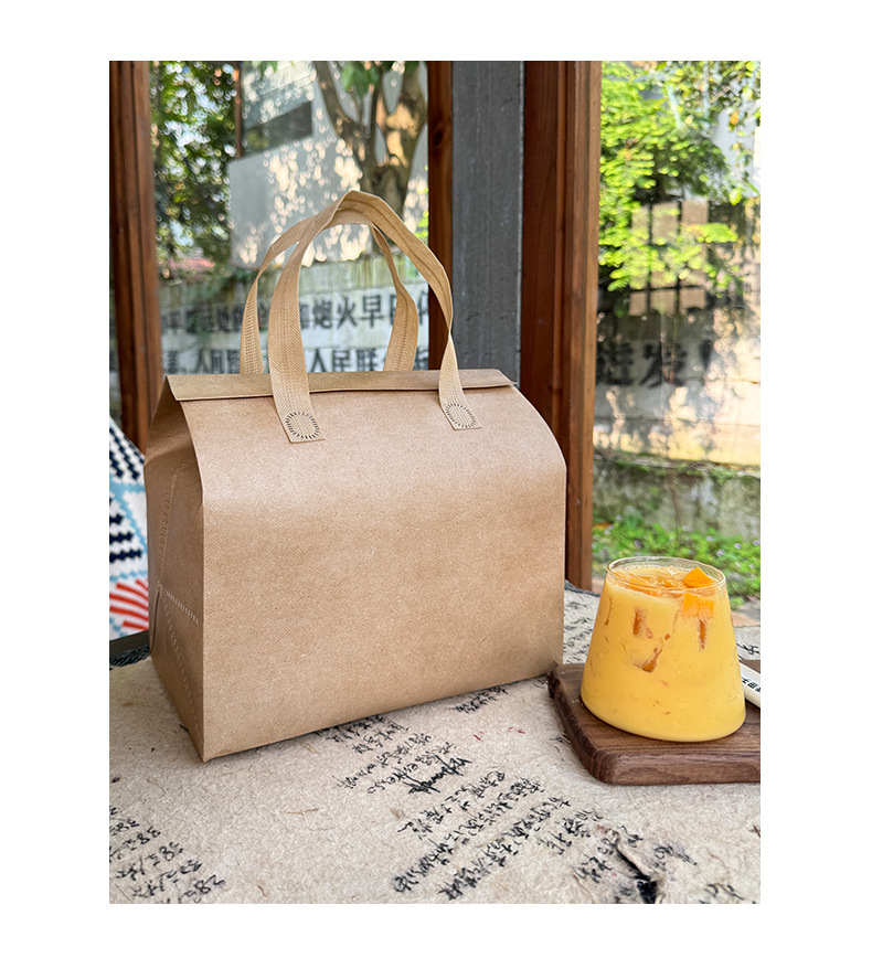 light brown thermal bag; medium length 24 height 24 width 15cm; film non-woven fabric