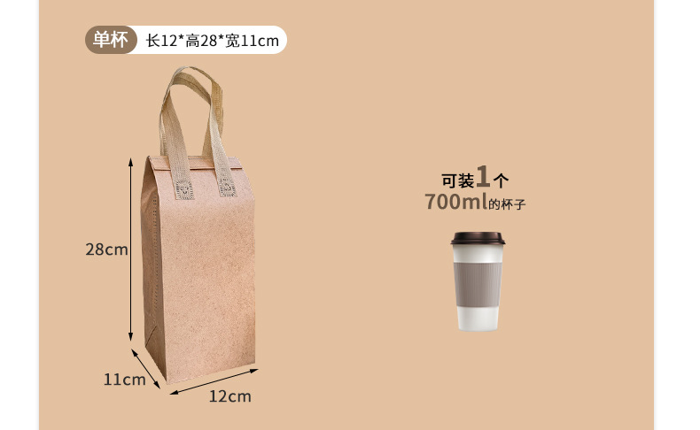 light brown thermal bag; single cup length 12 height 28 width 11cm; film non-woven fabric