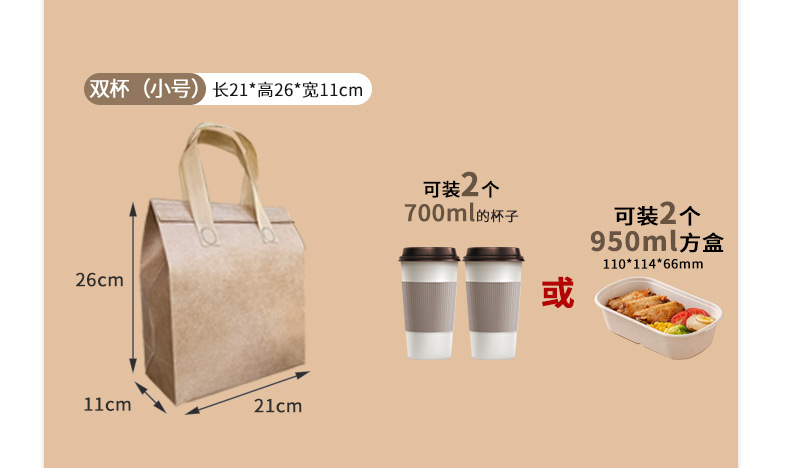 light brown thermal bag; small size (double cup) length 21 height 26 width 11cm; film non-woven fabric