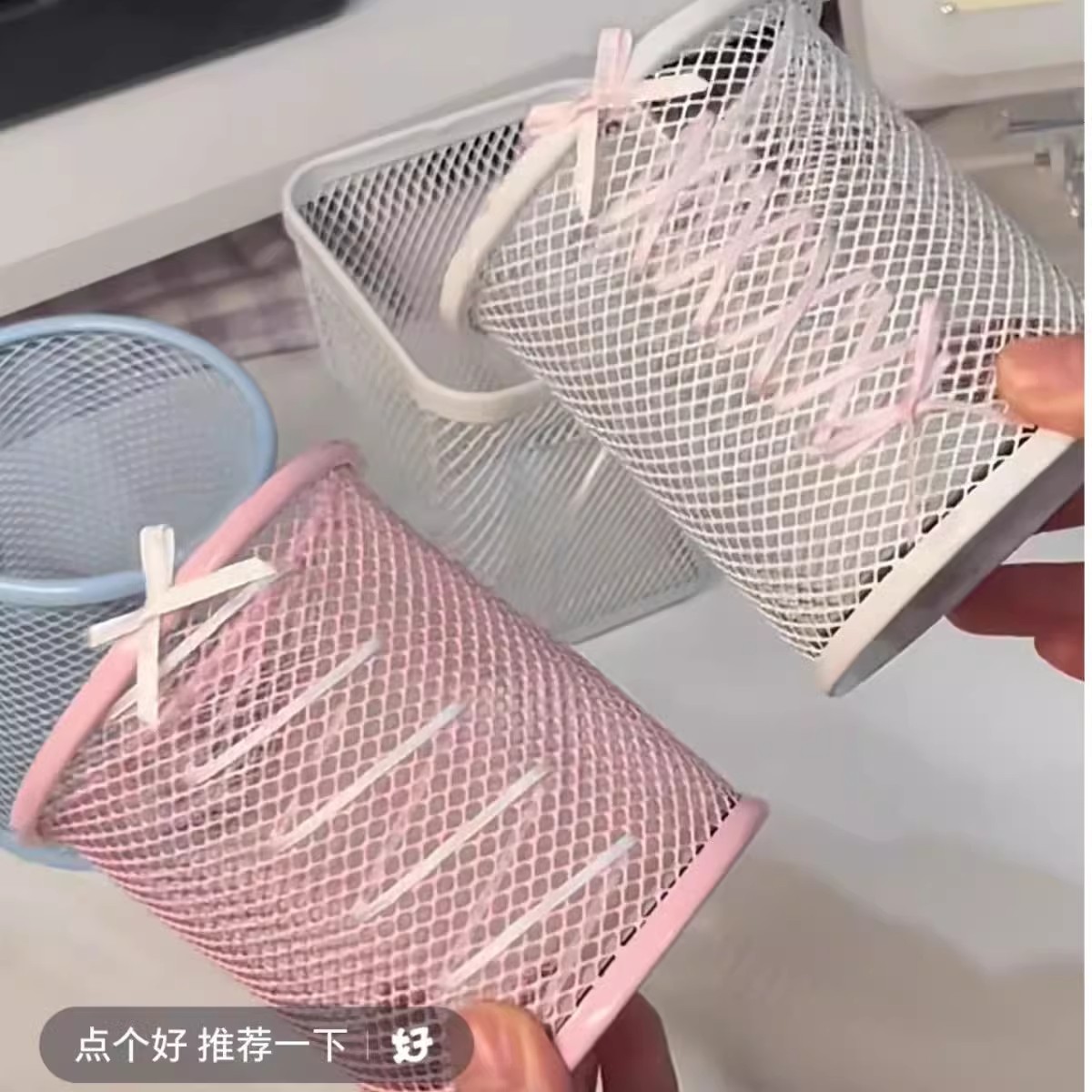 white hollow-out pen container-get bow bandage free [self-made main picture]]