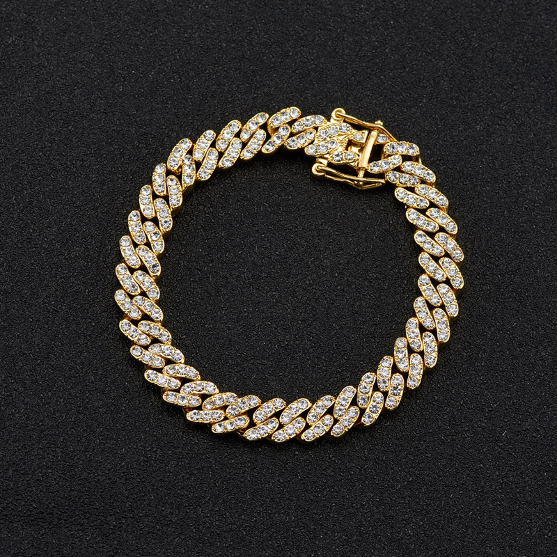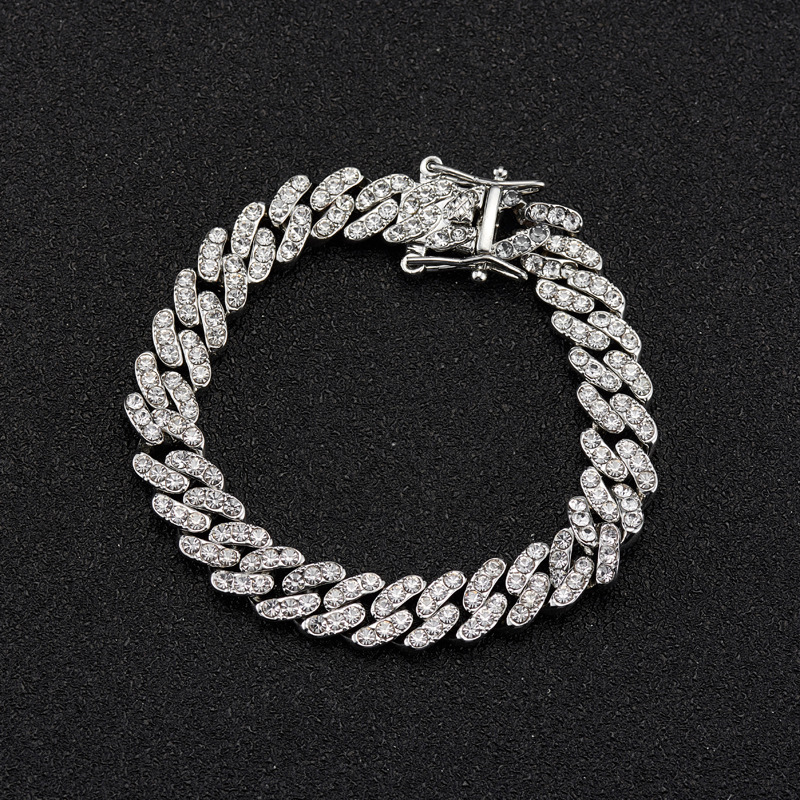 Product Name: Dual-Color Watercolor Diamond 9mm Cuban Chain for Men and Women, Fashionable and Individualistic Hip-Hop Trendy Brand