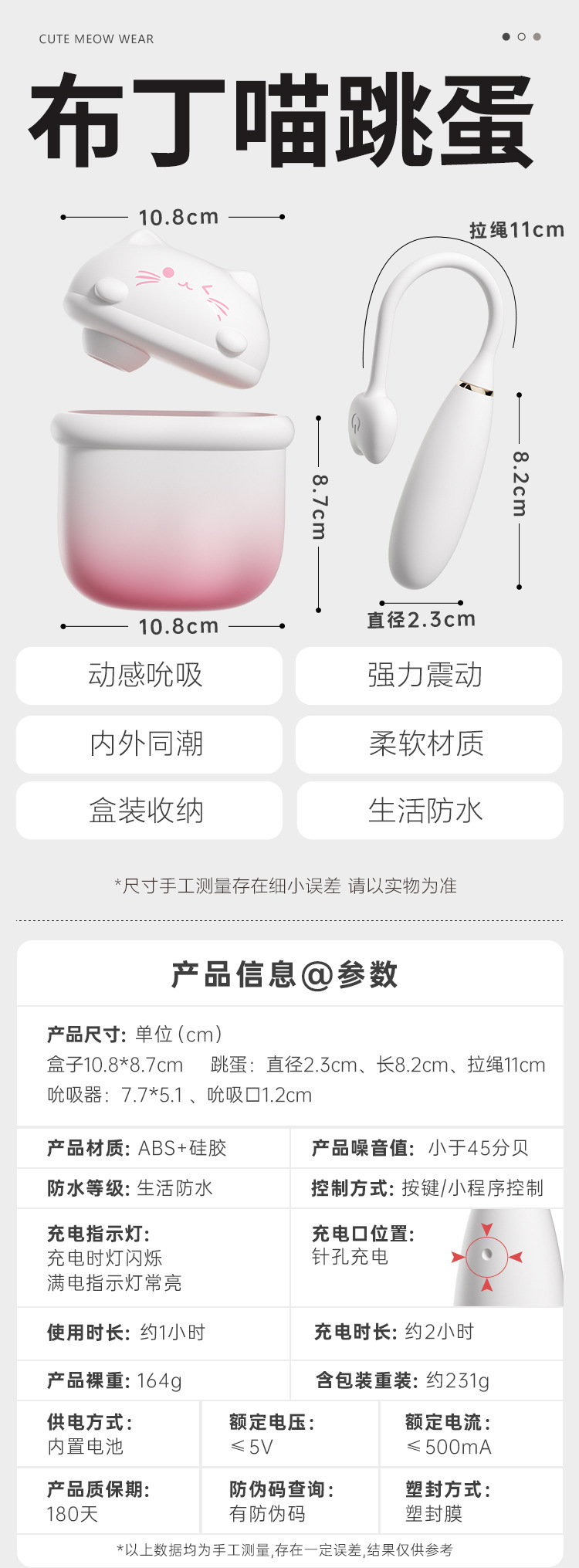Product Size (cm): Suction Lips: 1.2cm Base Box: Height: 8.7cm * Width: 10.8cm * Thickness: 6cm Vibrator: 2.3cm * 8.2cm, Rope Length: 11cm