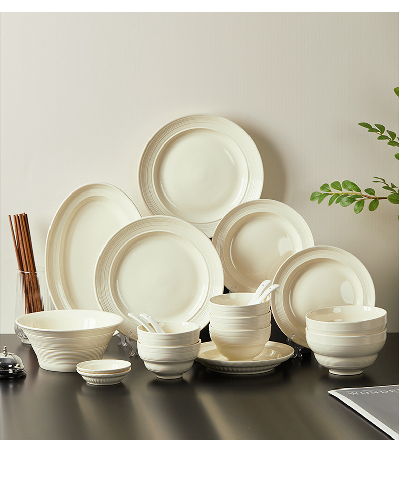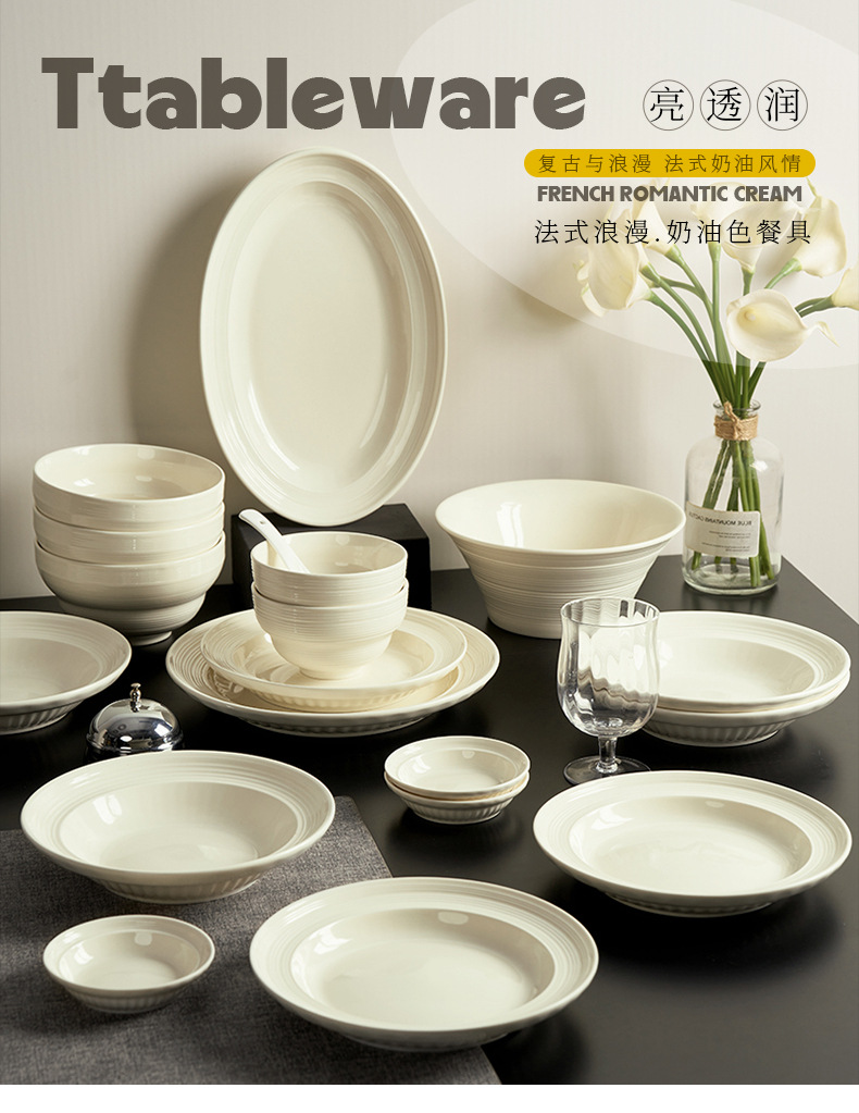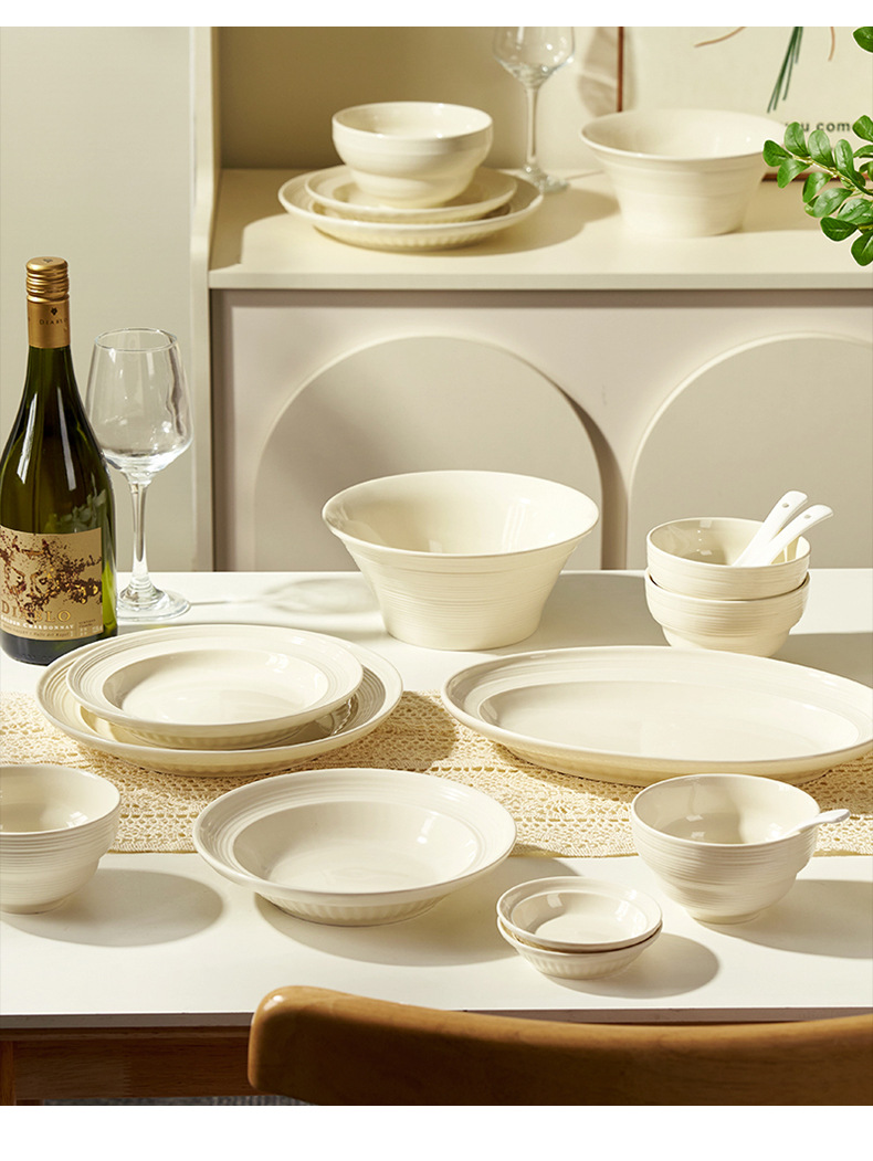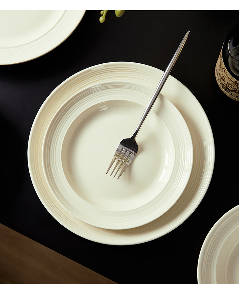 8-inch brushed half grain round deep plates-beige