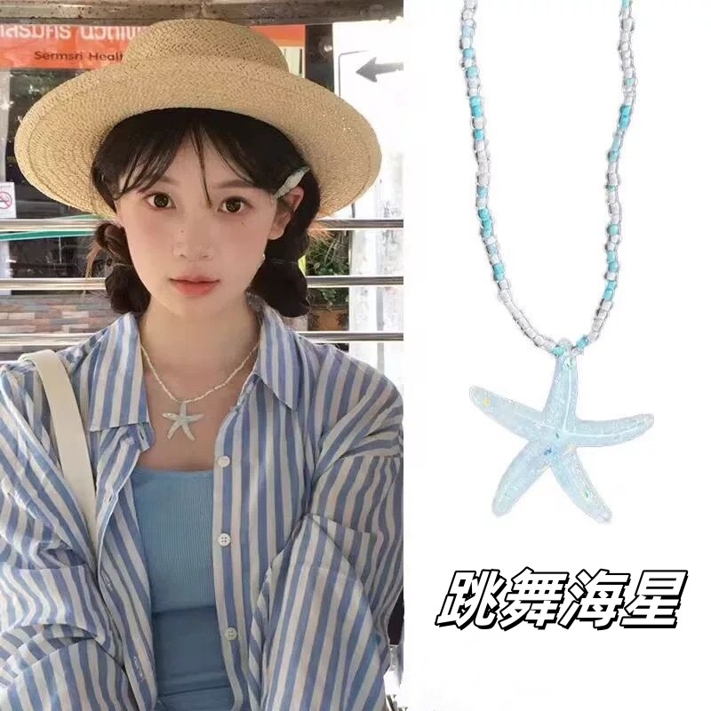 blue starfish beaded necklace [long]]