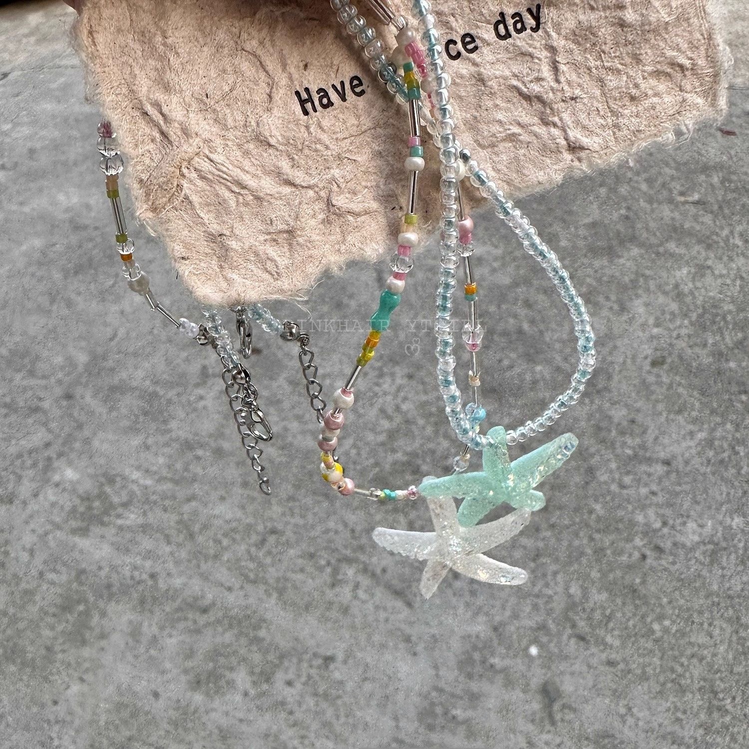 pink starfish beaded necklace [short]]