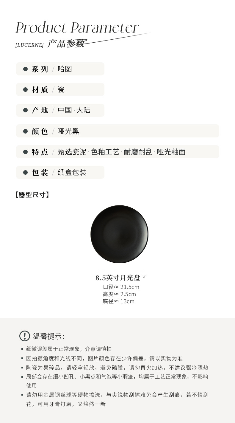 hatu 8.5-inch plate dish matte black 1 pack