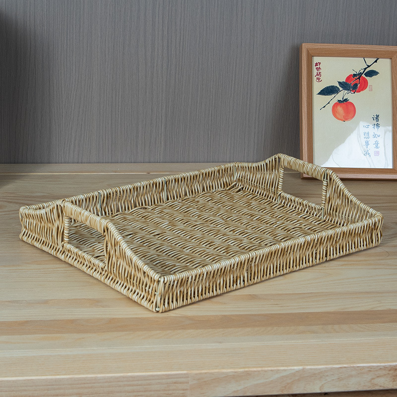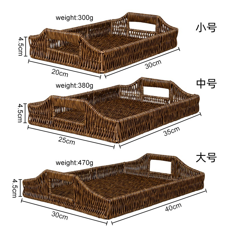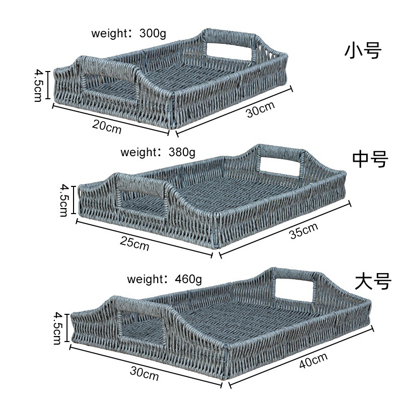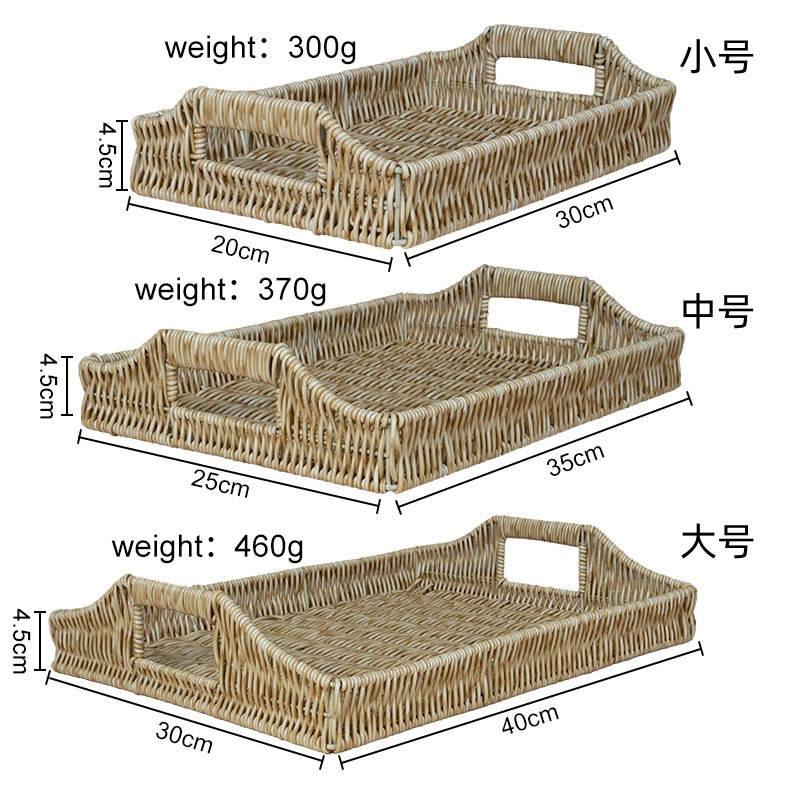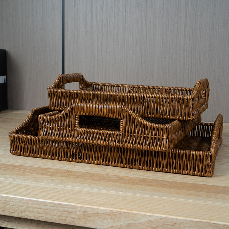 Three-color set of three rattan basket tray